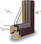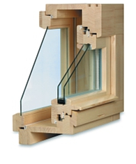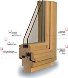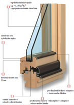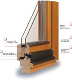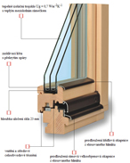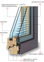 - ve vnitřní dřevěné části je uloženo dvojsklo a v hliníkové vnější části třetí samostatné sklo